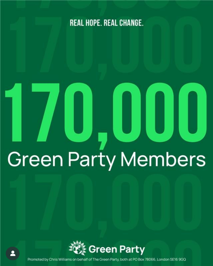 Offering hope has helped the Green Party build momentum. This has in turn played a part in swelling their party membership from around 90,000 at the time or release to a record-breaking 150,000 members at the time of writing.